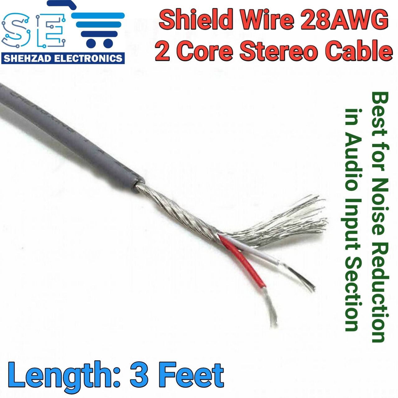 3 Feet Shielded Wire 28AWG Cable 2 Core PVC Audio Aux Shield Wire