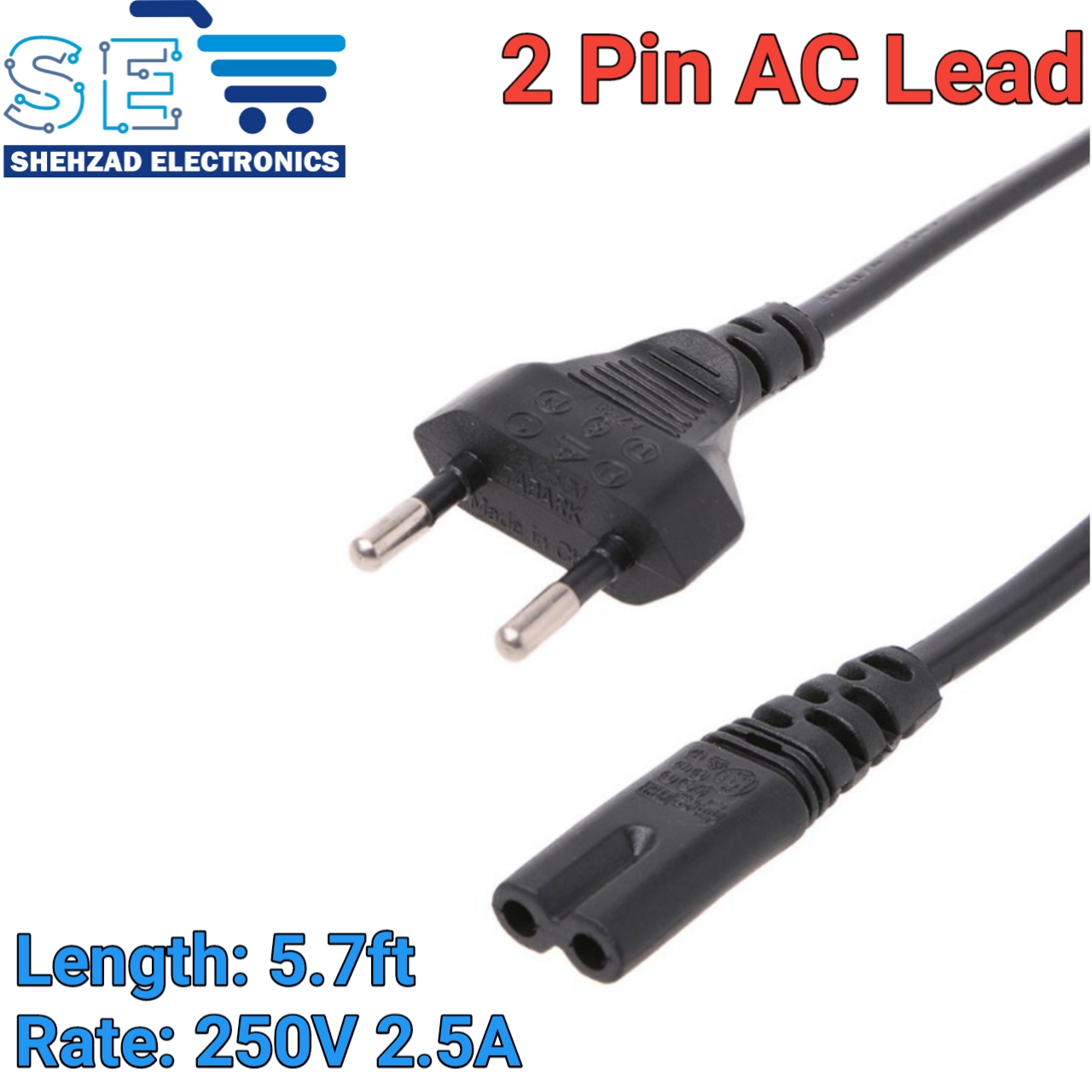 2-Pin EU Power Cord Cable – Type C Plug to IEC-320-C7, 250V 2.5A