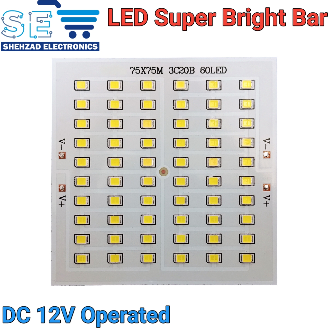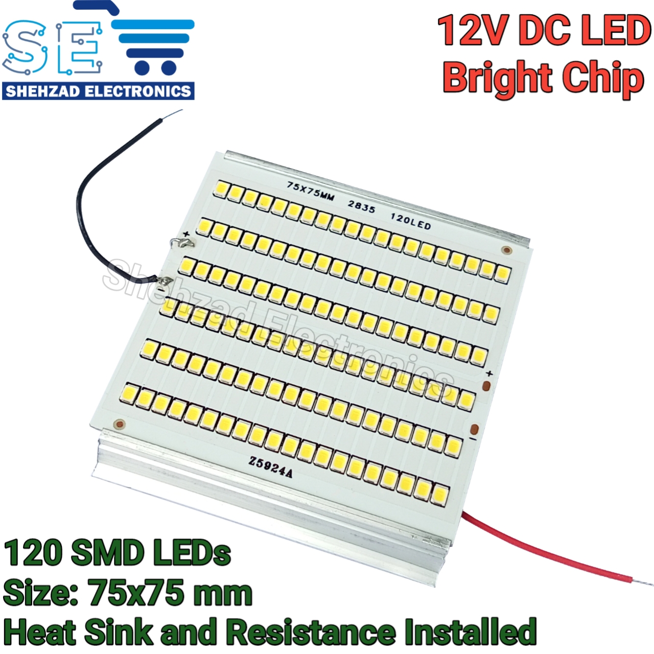 12V DC 120 SMD LED Panel Light 75x75mm – Ultra Bright with Heat Sink