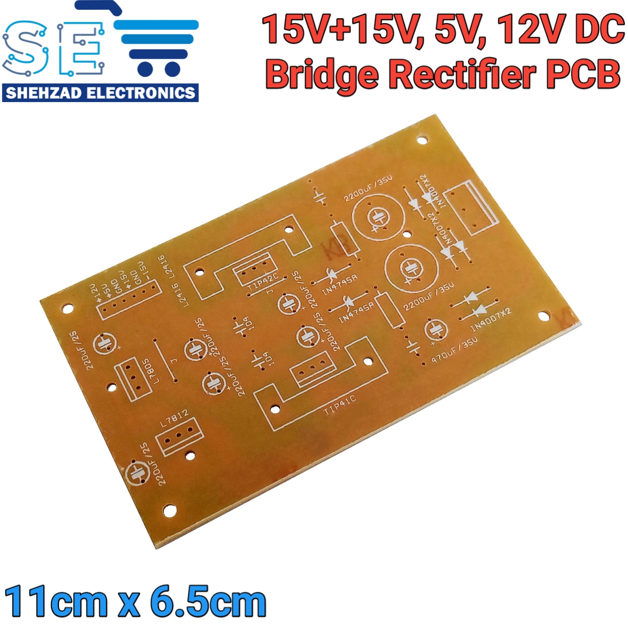 Multi Output Bridge Rectifier PCB – 15V 15V, 5V, 12V DC Power Supply Board | 11cm x 6.5cm